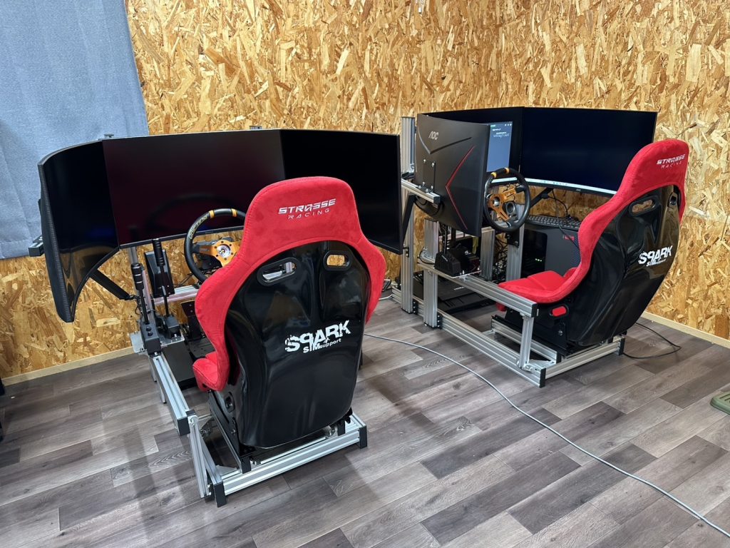 複数台のシミュレーターをネットワークで接続することで、仲間同士でのタイムアタックや対戦走行も可能。